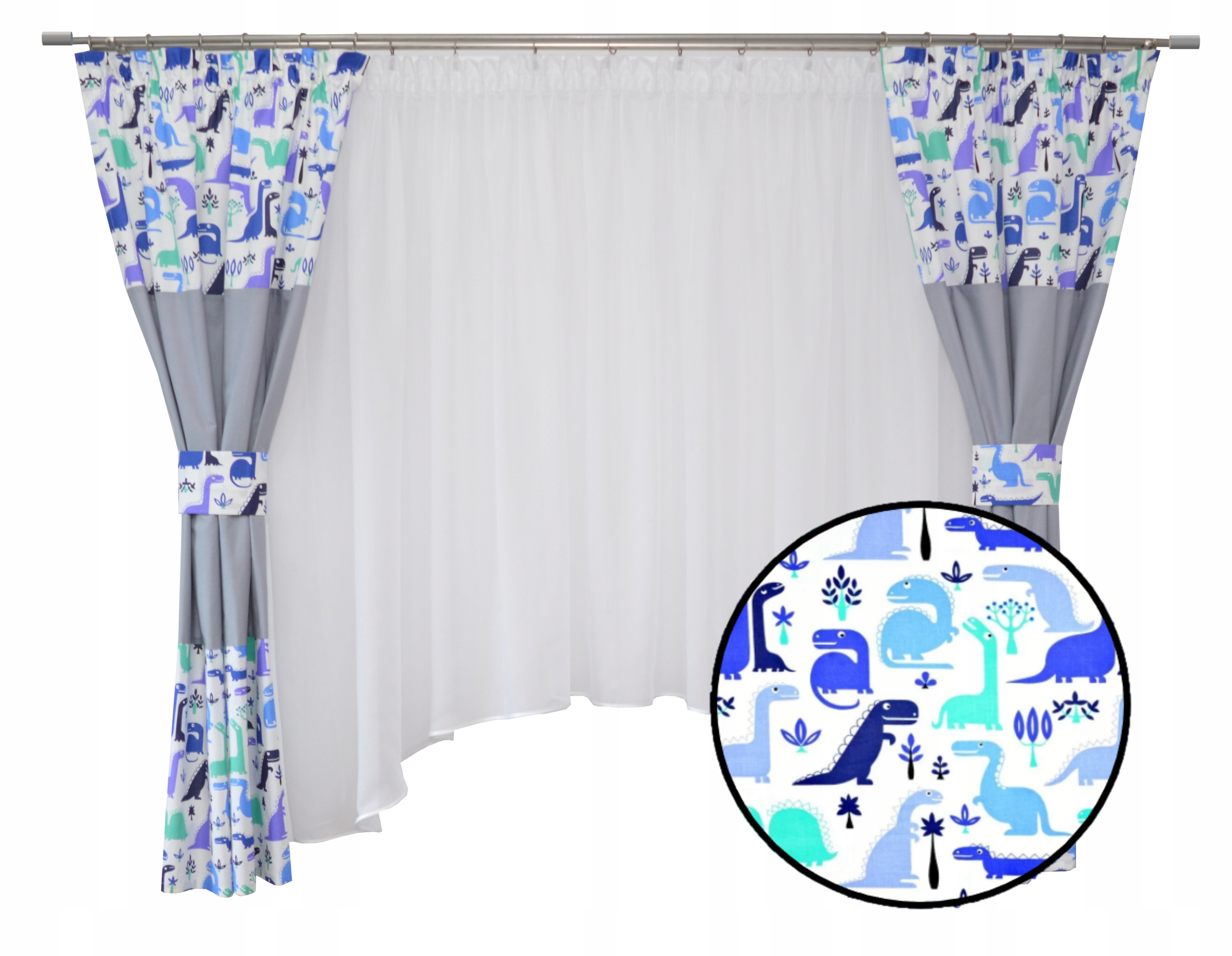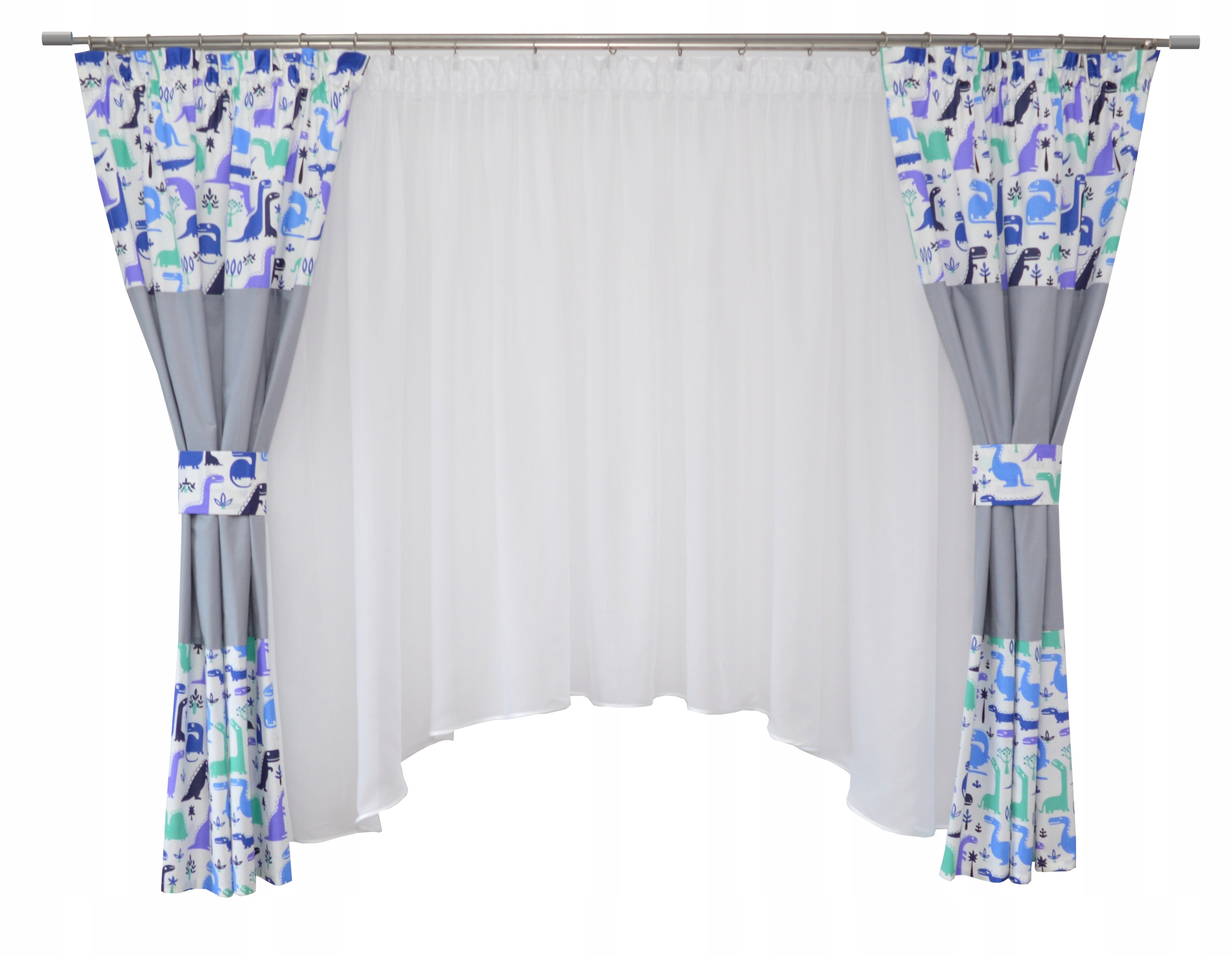 – dwie zasłonki uszyte na taśmie smok z dodatkową wypustką zasłaniającą żabki,