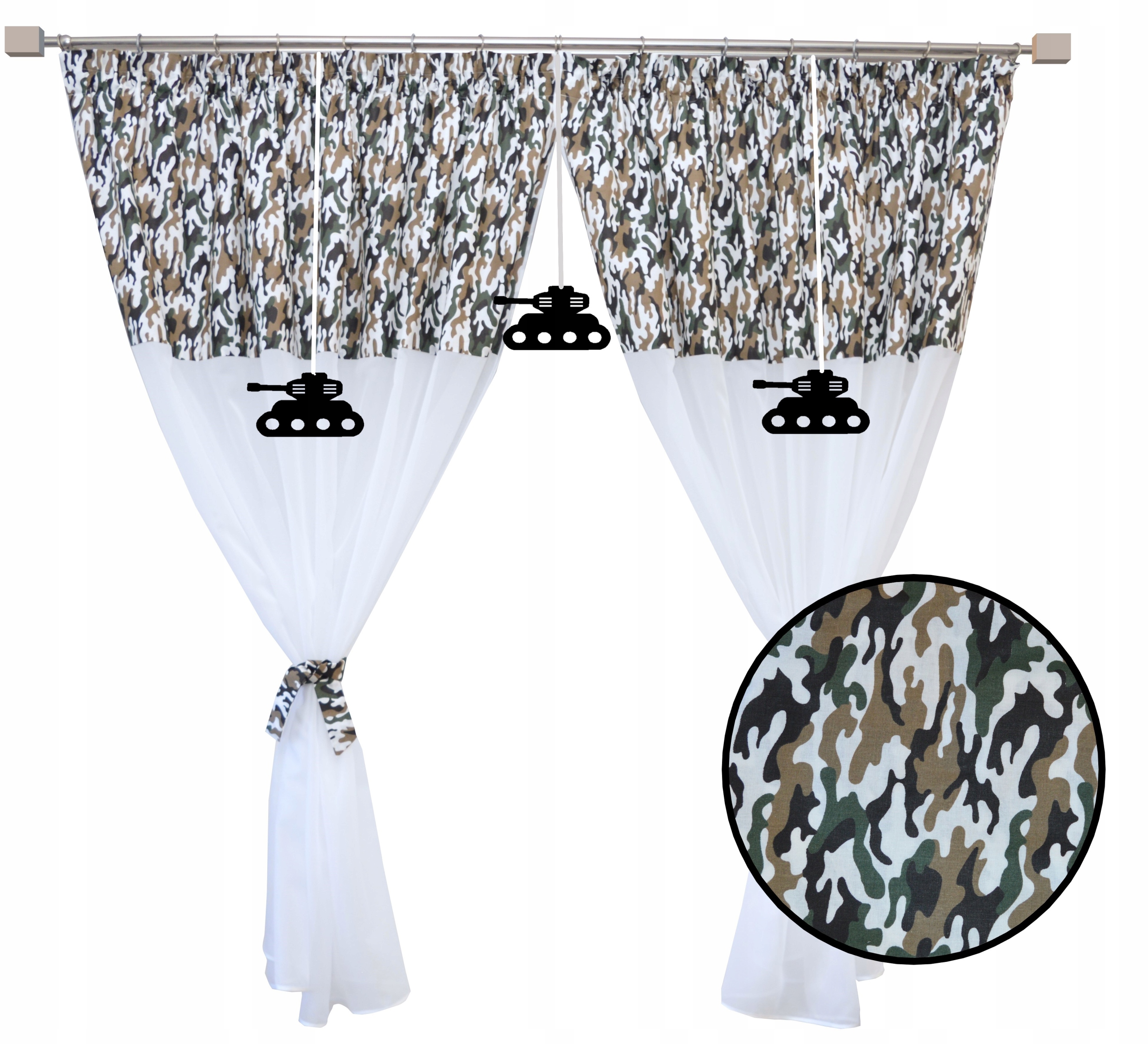 - W skład zestawu wchodzą dwa rodzaje opasek do upięcia firany oraz trzy zawieszki czołg.