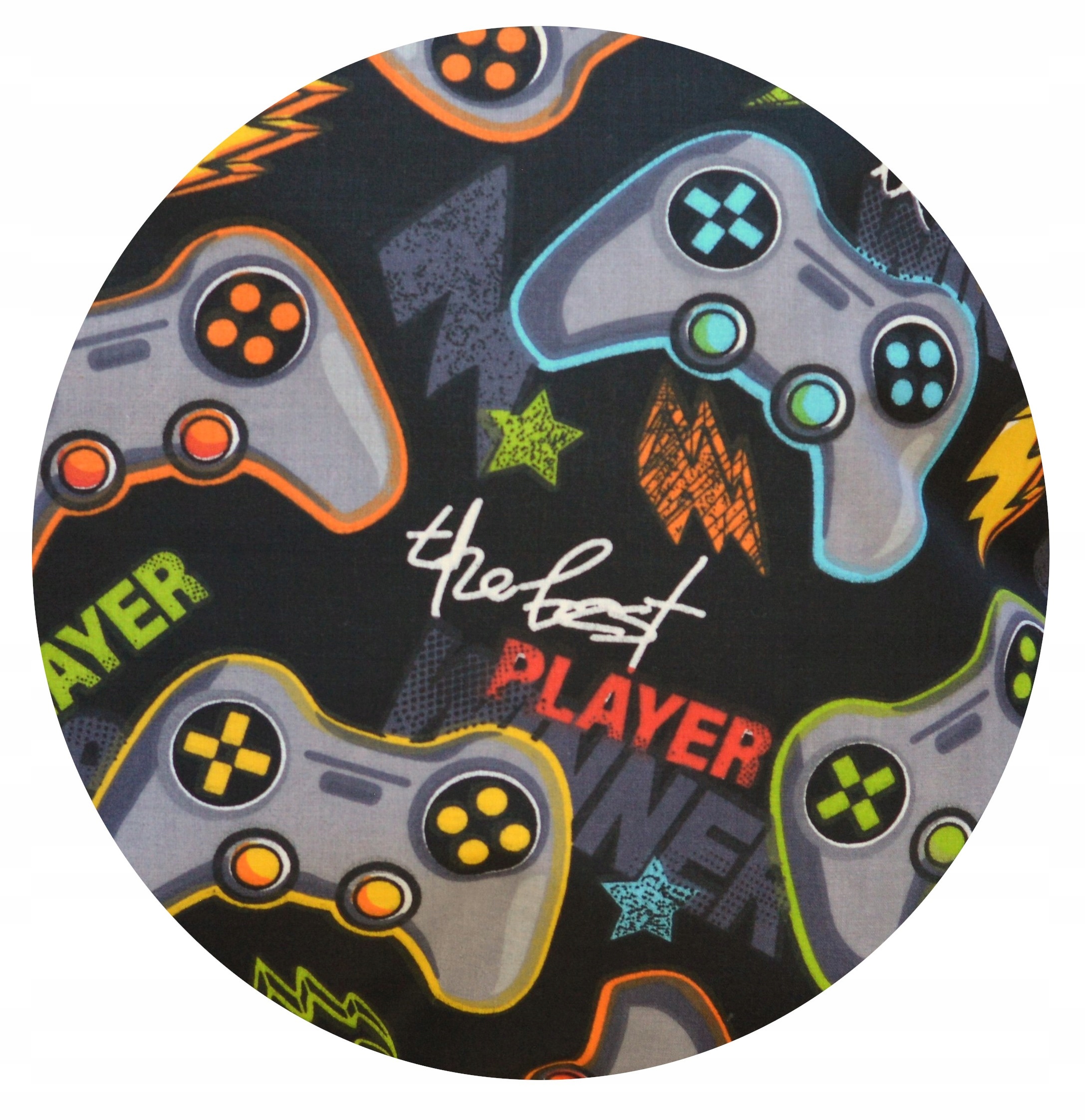 - firana – delikatny woal poliestrowy✅ Kolory: szarość z kolorowym nadrukiem gamepadów (zasłony), biały (firana)