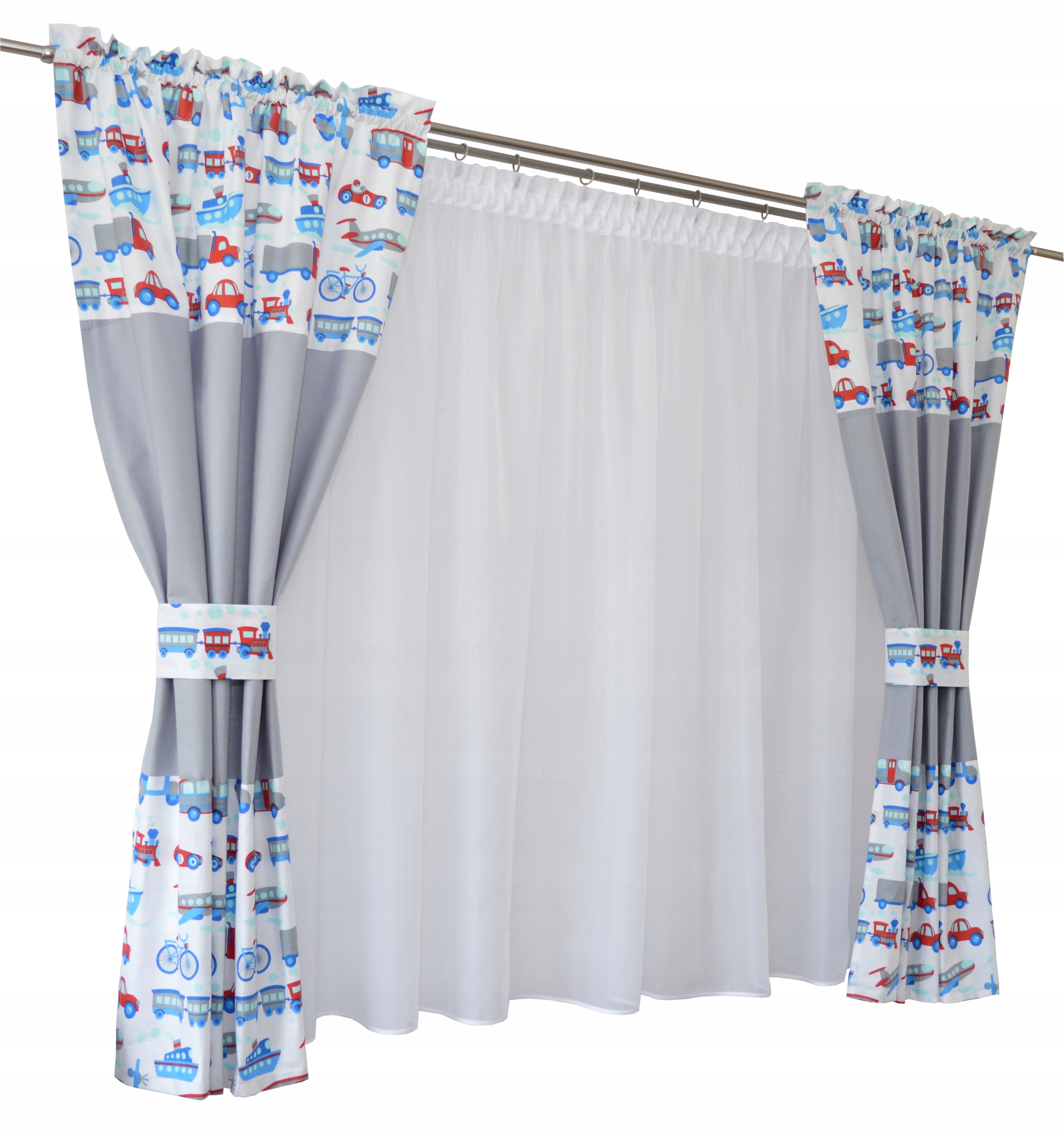 – dwie zasłonki uszyte na taśmie smok z dodatkową wypustką zasłaniającą żabki,